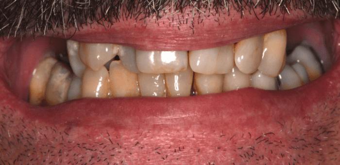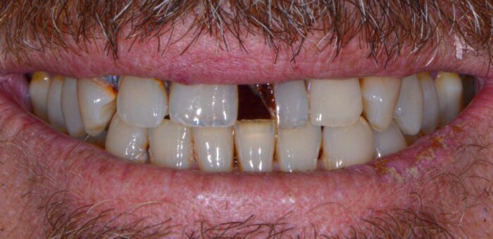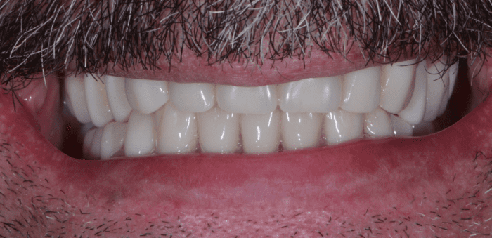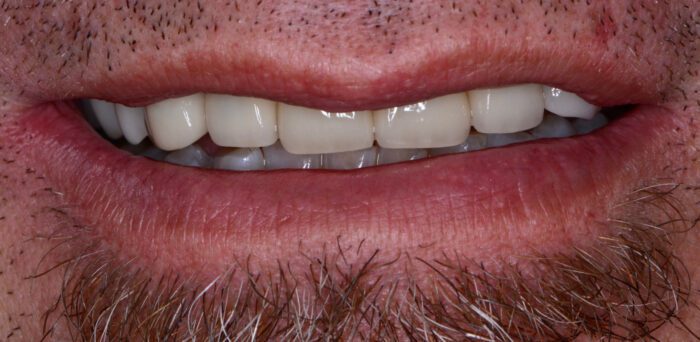With a combination of extractions, implants, and bridges, we were able to restore this wonderful individual’s smile and oral health. Removing infected teeth helps take stress away from the immune system. Replacing those teeth with implant bridges gives this patient a smile he can be proud of! Complex cases like these take coordinated planning and foresight but the results are worth all the hard work.