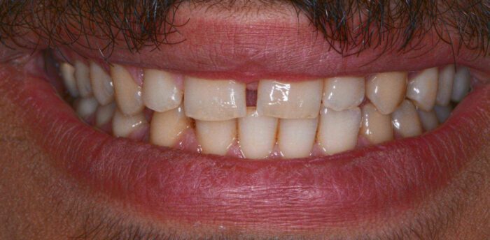 This patient was used to not smiling in photos because he really did not like the spacing between his front teeth and some of the malalignment elsewhere. After 7 months, he is smiling and showing off his teeth every chance he gets!